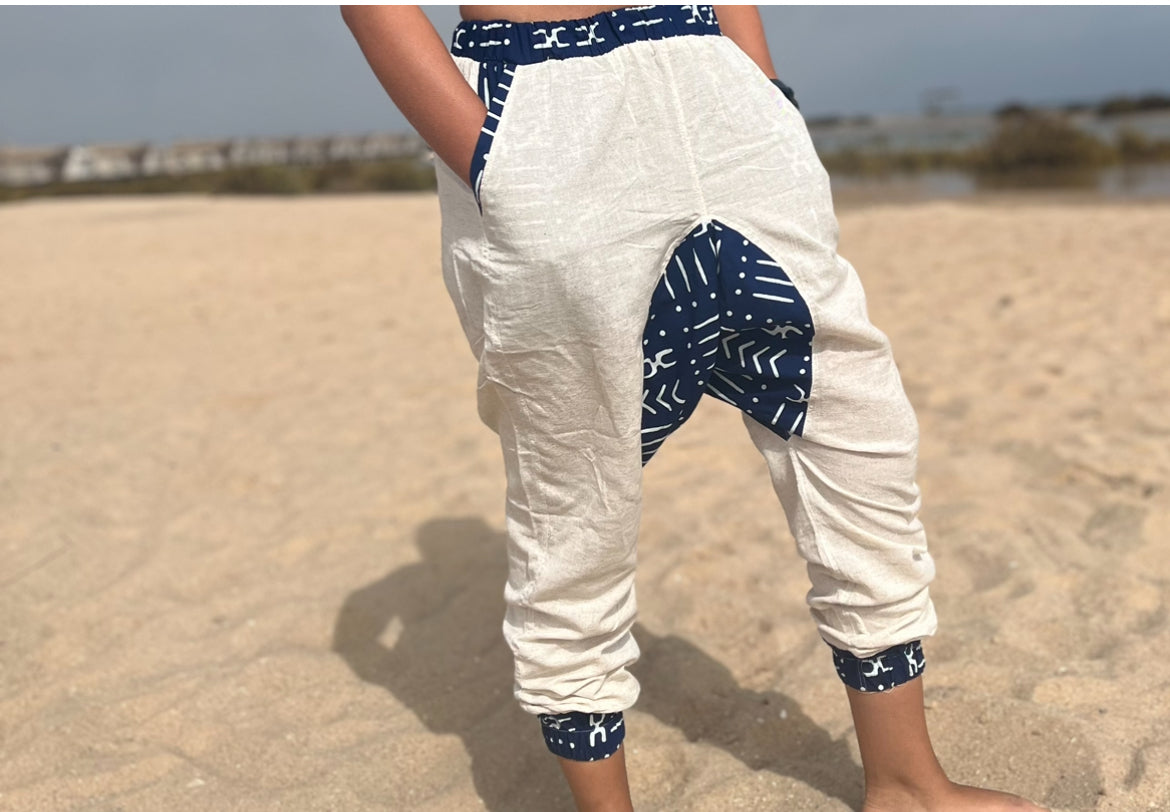 Apportez une touche de fraîcheur et de style à vos looks avec ce sarouel léger et confortable. Profitez d'une coupe large et agréable ! Confectionné en lin doux, coton 100 % et wax coton, il est très agréable à porter. Le design du tissu wax avec des motifs bogolan vous accompagnera parfaitement lors de vos moments de détente. 👌👌